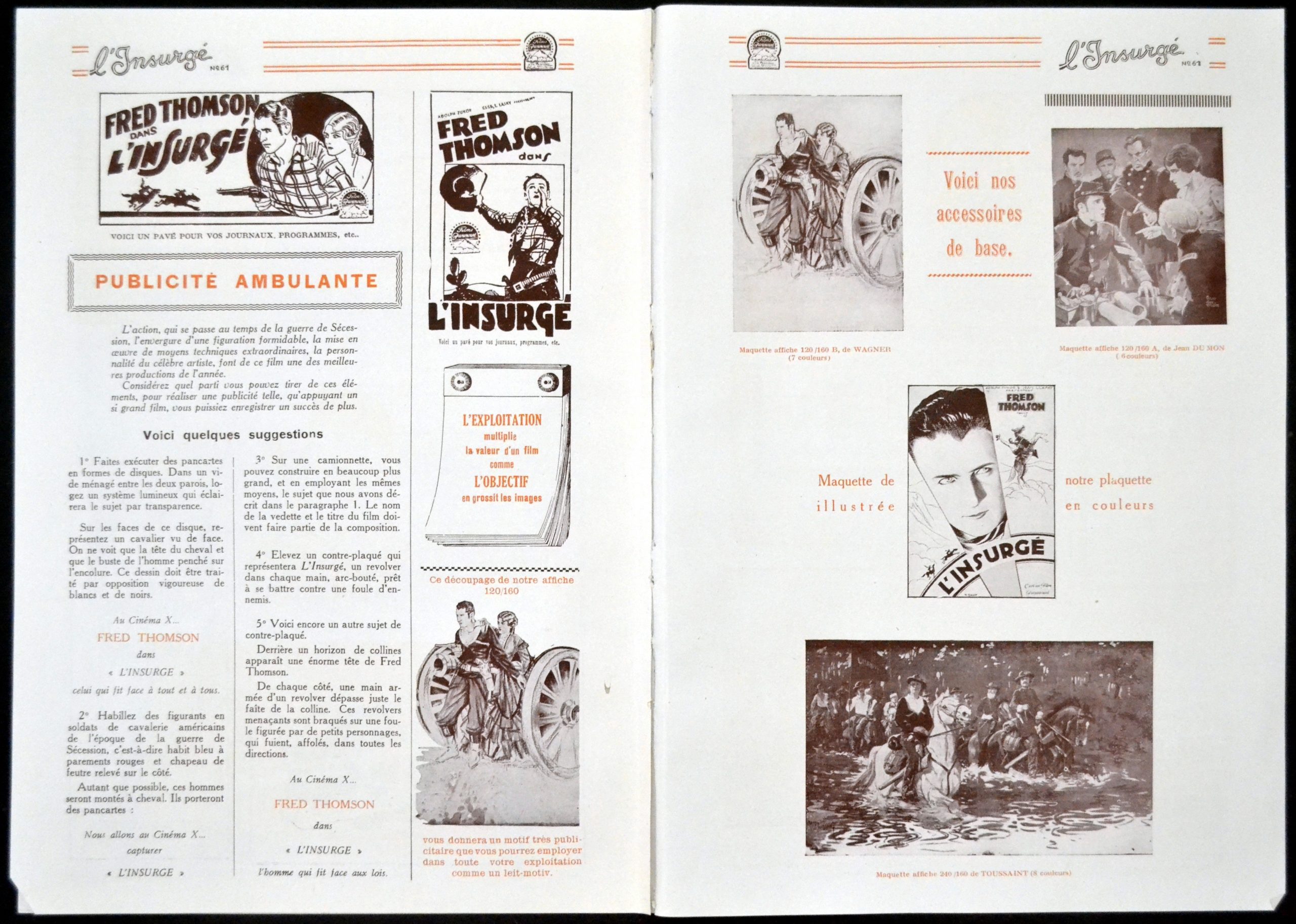 Original French 12 1/4 inch x 8 3/4 inch 8 Page Illustrated Pressbook for the 1927 Lloyd Ingraham Western THE OUTLAW RIDER (JESSE JAMES)(L’INSURGE), based on the story by Frank M. Clifton and starring Fred Thomson as Jesse James, Nora Lane, Montagu Love, Mary Carr, James Pierce as Frank James and Harry Woods as Bob Ford. .