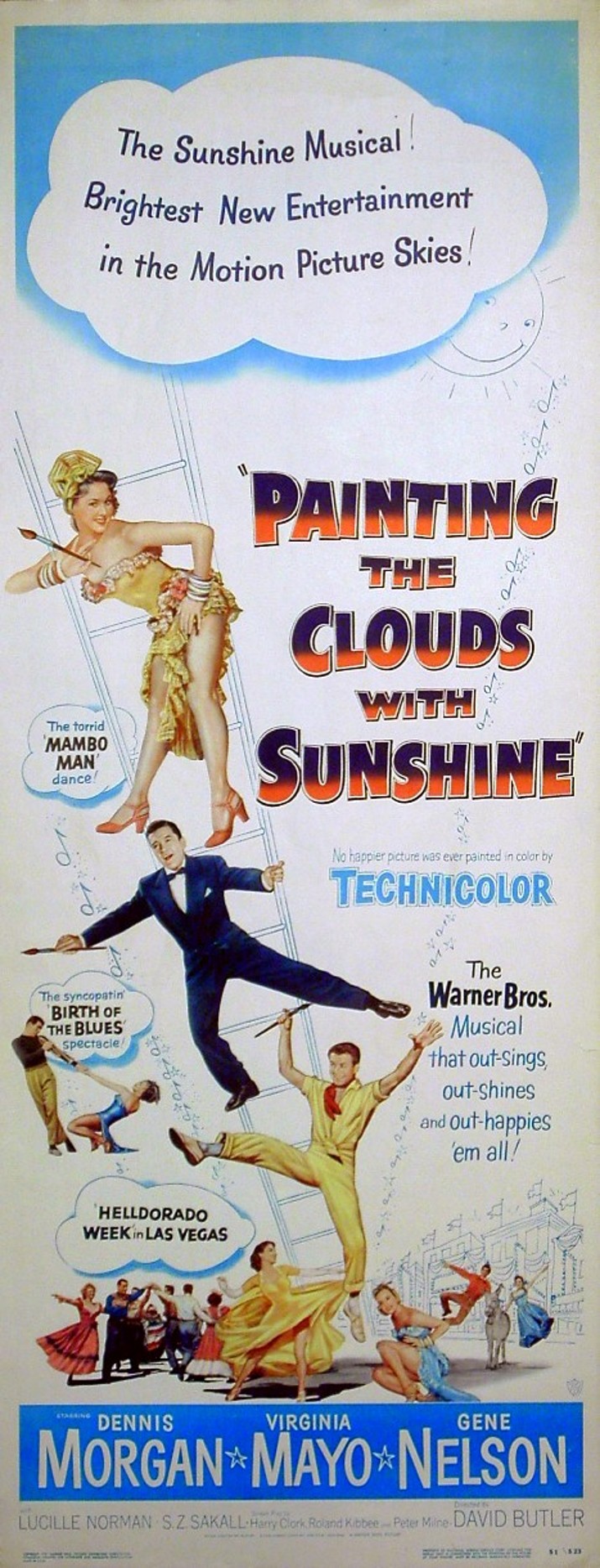 Original U.S. 14 inch x 36 inch Insert Poster for the 1951 David Butler Musical PAINTING THE CLOUDS WITH SUNSHINE starring Dennis Morgan, Virginia Mayo and Gene Nelson.