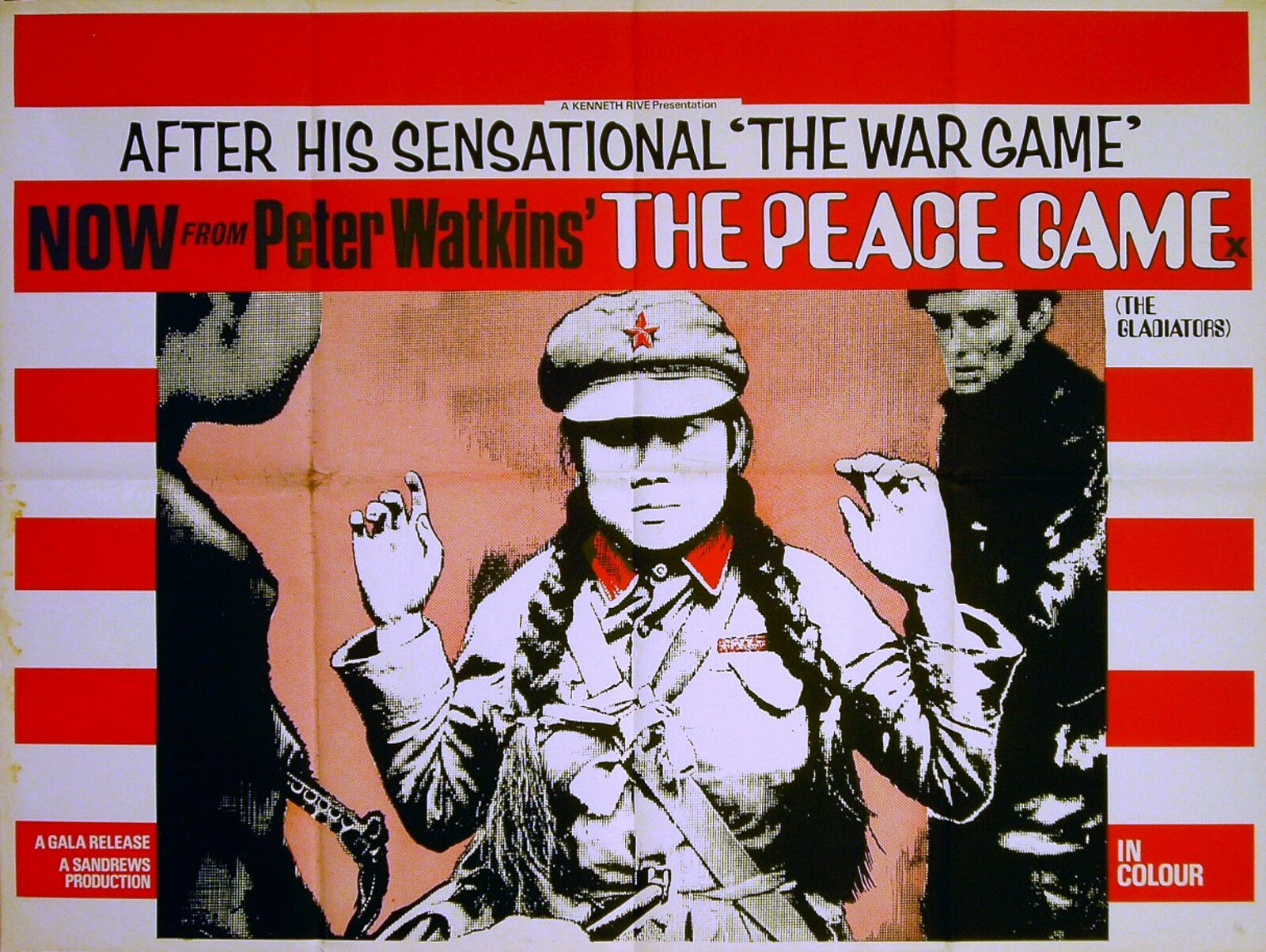 Original British 30 inch x 40 inch Quad Poster for the 1969 Peter Watkins Sci-Fi Drama THE PEACE GAME (GLADIATORERNA) starring Arthur Pentelow, Frederick Danner, Hans Bendrik, Daniel Harle, Björn Franzén, Kenneth Lo, Hans Berger, Rosario Gianetti, Tim Yum, Stefan Dillan, Jürgen Schilling, George Harris, Ugo Chiari and Chandrakant Desai.