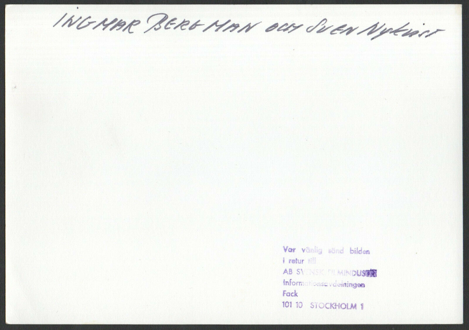 2 Original Swedish 7 inch x 5 inch Stills of director INGMAR BERGMAN and cinematographer SVEN NYKVIST for their 1966 Drama PERSONA.