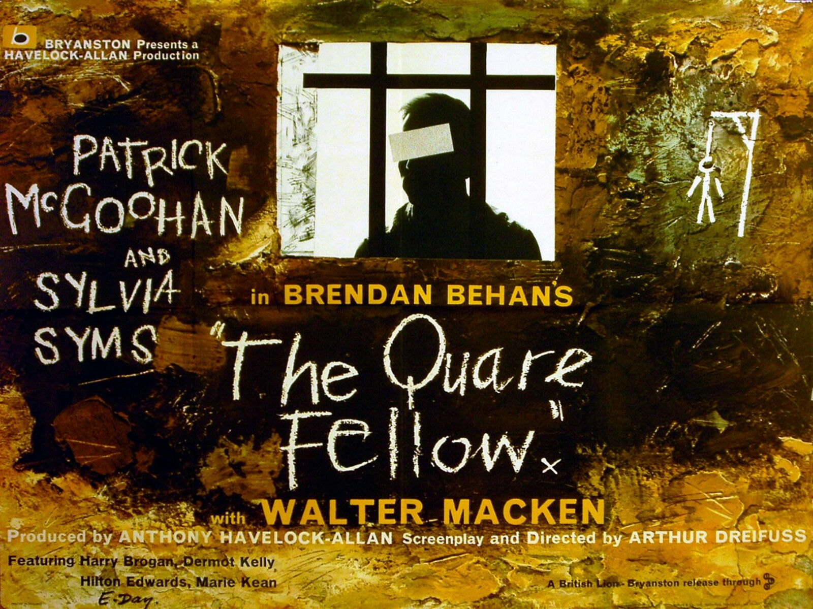 Original British 30 inch x 40 inch Quad Poster for the 1962 Arthur Dreifuss Drama THE QUARE FELLOW, based on the play by Brendan Behan and starring Patrick McGoohan, Sylvia Syms, Walter Macken, Dermot Kelly, Jack Cunningham, Hilton Edwards, Philip O’Flynn, Leo McCabe, Norman Rodway, Marie Kean, Pauline Delaney and T.P. McKenna .