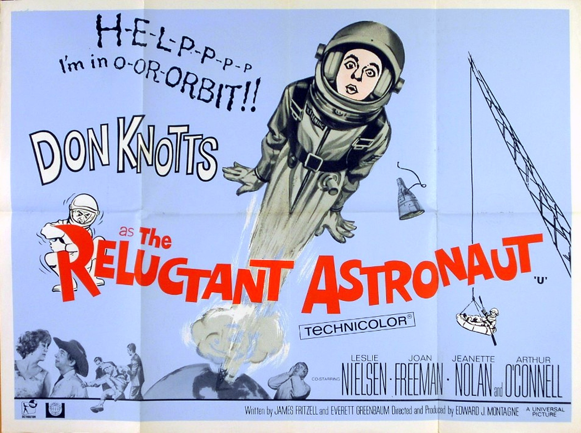 Original British 30 inch x 40 inch Quad Poster for the 1967 Edward Montagne Sci-Fi Comedy THE RELUCTANT ASTRONAUT starring Don Knotts, Leslie Nielsen, Joan Freeman, Jeanette Nolan, Arthur O’Connell, Frank McGrath and Robert Pickering.