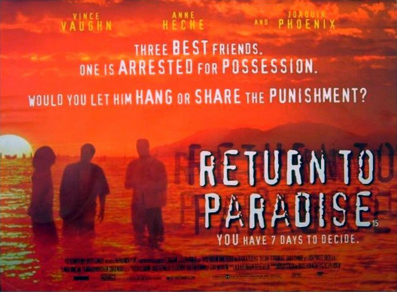 Original British 30 inch x 40 inch double-sided Quad Poster for the 1998 Joseph Ruben Thriller RETURN TO PARADISE starring Vince Vaugn, Anne Heche and Joaquin Phoenix.