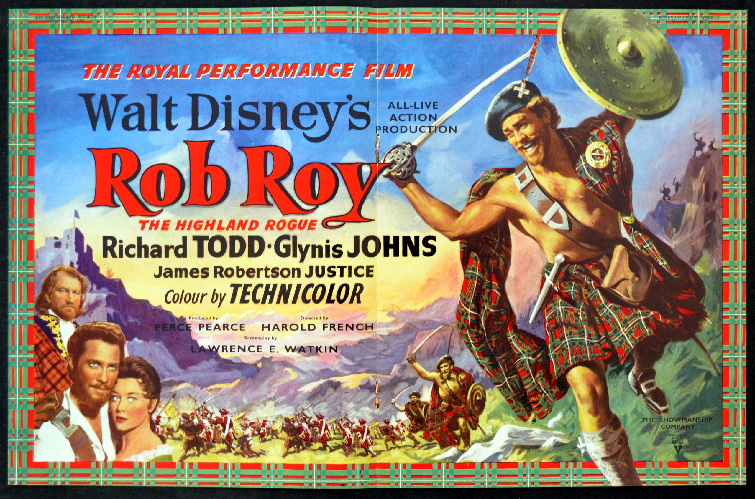 Original British 17 inch x 11 inch Trade Advertisement from Kinematograph Weekly for the 1953 Harold French Adventure ROB ROY – THE HIGHLAND ROGUE, based on the novel by Walter Scott and starring Richard Todd, Glynis Johns, James Robertson Justice, Michael Gough, Finlay Currie, and Geoffrey Keen.
