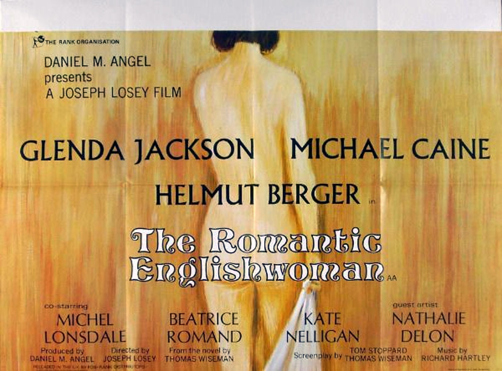 Original British 30 inch x 40 inch Quad Poster for the 1975 Joseph Losey Drama THE ROMANTIC ENGLISHWOMAN, based on the novel by Thomas Wiseman with a screenplay by Tom Stoppard andand starring Glenda Jackson, Michael Caine, Helmut Berger, Michael Lonsdale, Béatrice Romand, Kate Nelligan, Nathalie Delon and Frances Tomelty.