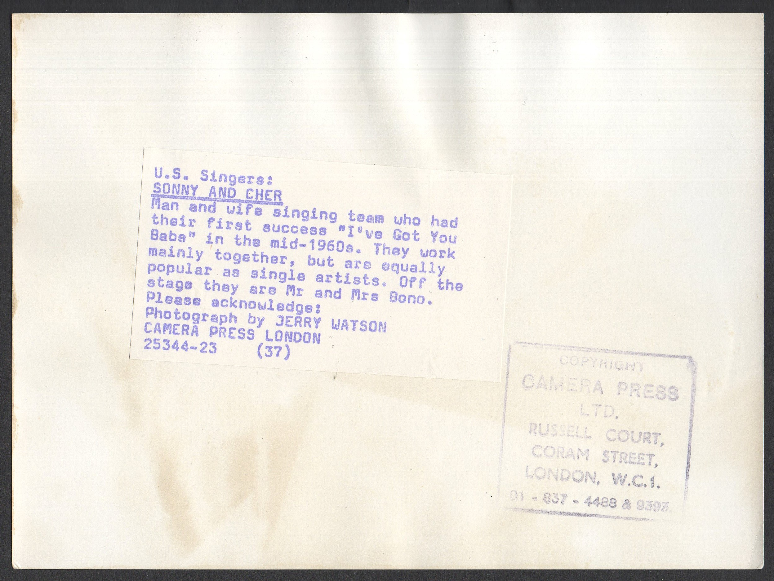 Original 1960s 8 inch x 6 inch Press Photo of SONNY AND CHER.
