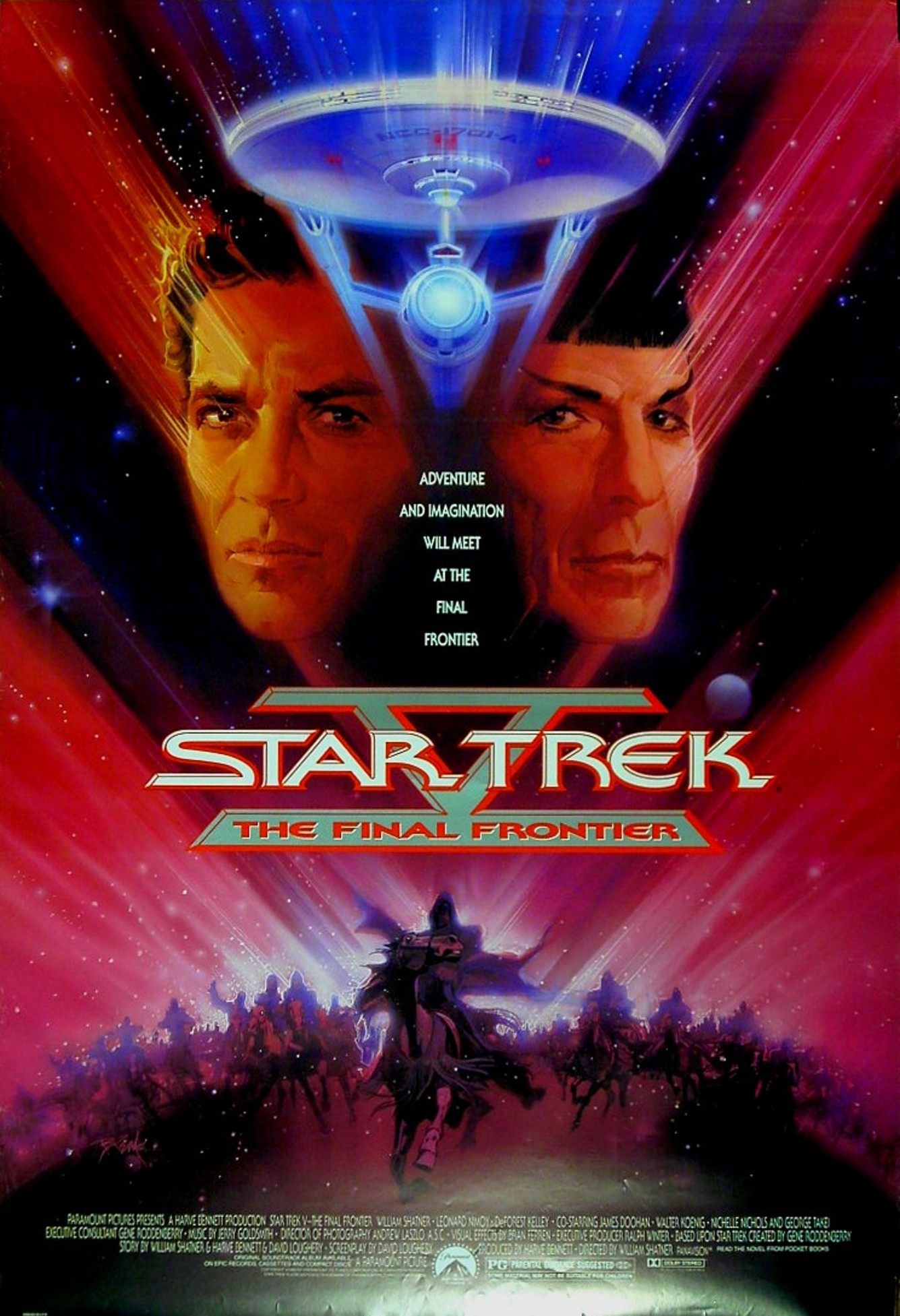 Original U.S. 27 inch x 41 inch 1-Sheet Poster for the 1989 William Shatner Sci-Fi Movie STAR TREK V THE FINAL FRONTIER starring William Shatner, Leonard Nimoy, DeForest Kelley, James Doohan, Walter Koenig, Nichelle Nichols, George Takei and David Warner.