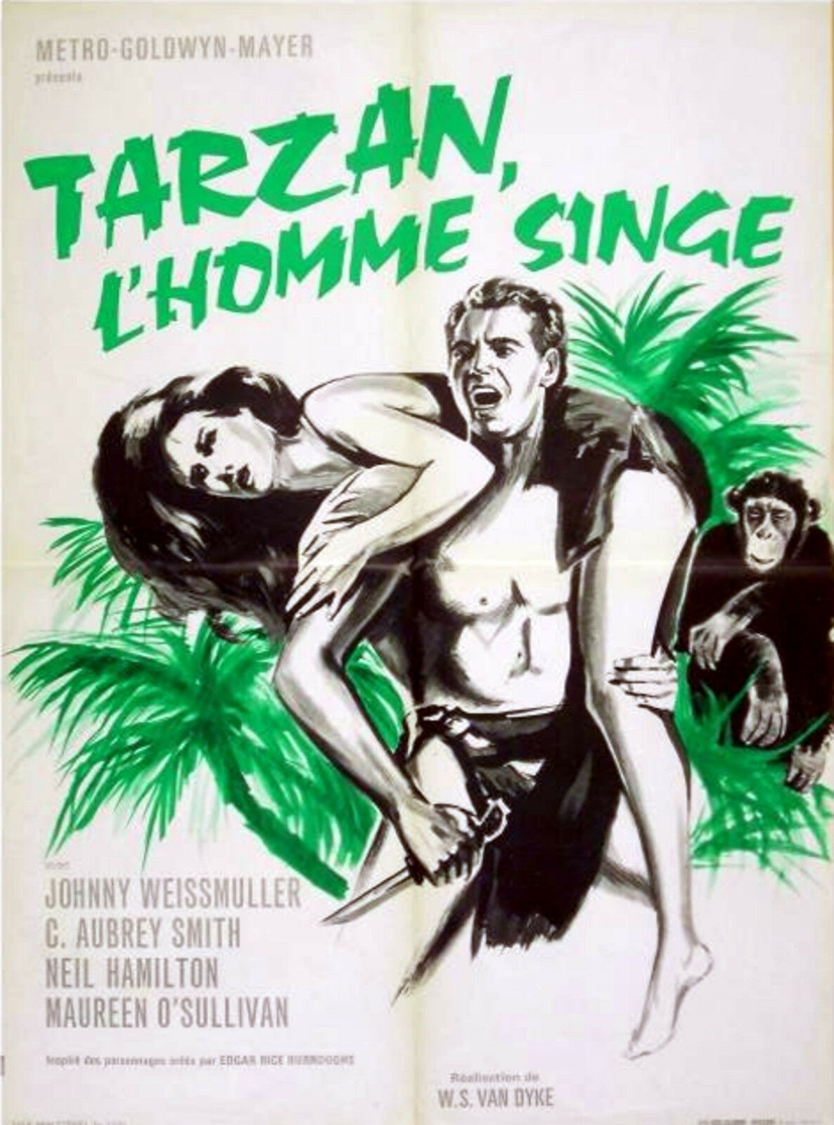 Original 1970s Re-Release French 23 inch x 31 inch Poster for the 1932 W.S. Van Dyke Adventure TARZAN, THE APE MAN, based on the novel by Edgar Rice Burroughs and starring Johnny Weissmuller, C. Aubrey Smith, Neil Hamilton and Maureen O’Sullivan.