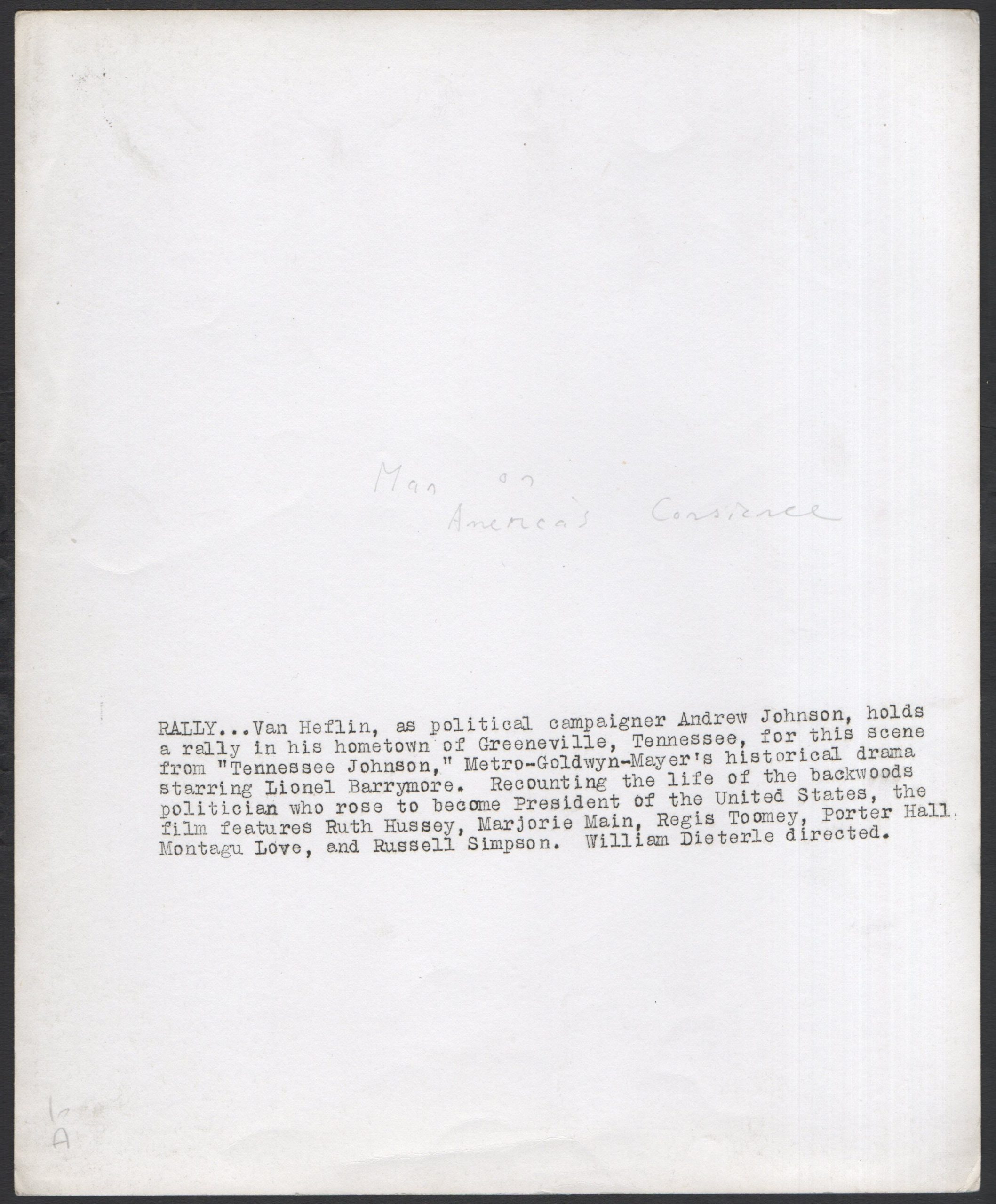 Original 10 inch x 8 inch Black and White Still of VAN HEFLIN as Andrew Johnson in the 1942 William Dieterle Biographical Drama TENNESSEE JOHNSON also starring Lionel Barrymore, Ruth Hussey, Marjorie Main, Regis Toomey, J. Edward Bromberg and Grant Withers.