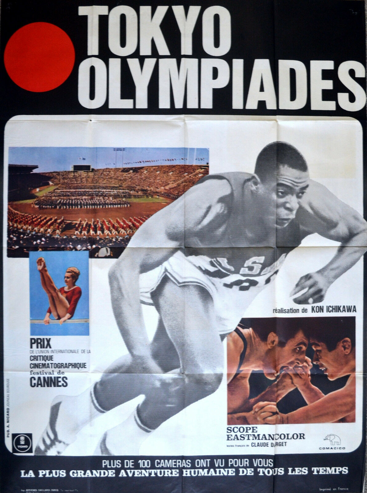 Original French 47 inch x 63 inch Poster for the 1965 Kon Ichikawa Olympics Documentary TOKYO OLYMPIAD featuring Abebe Bikila.