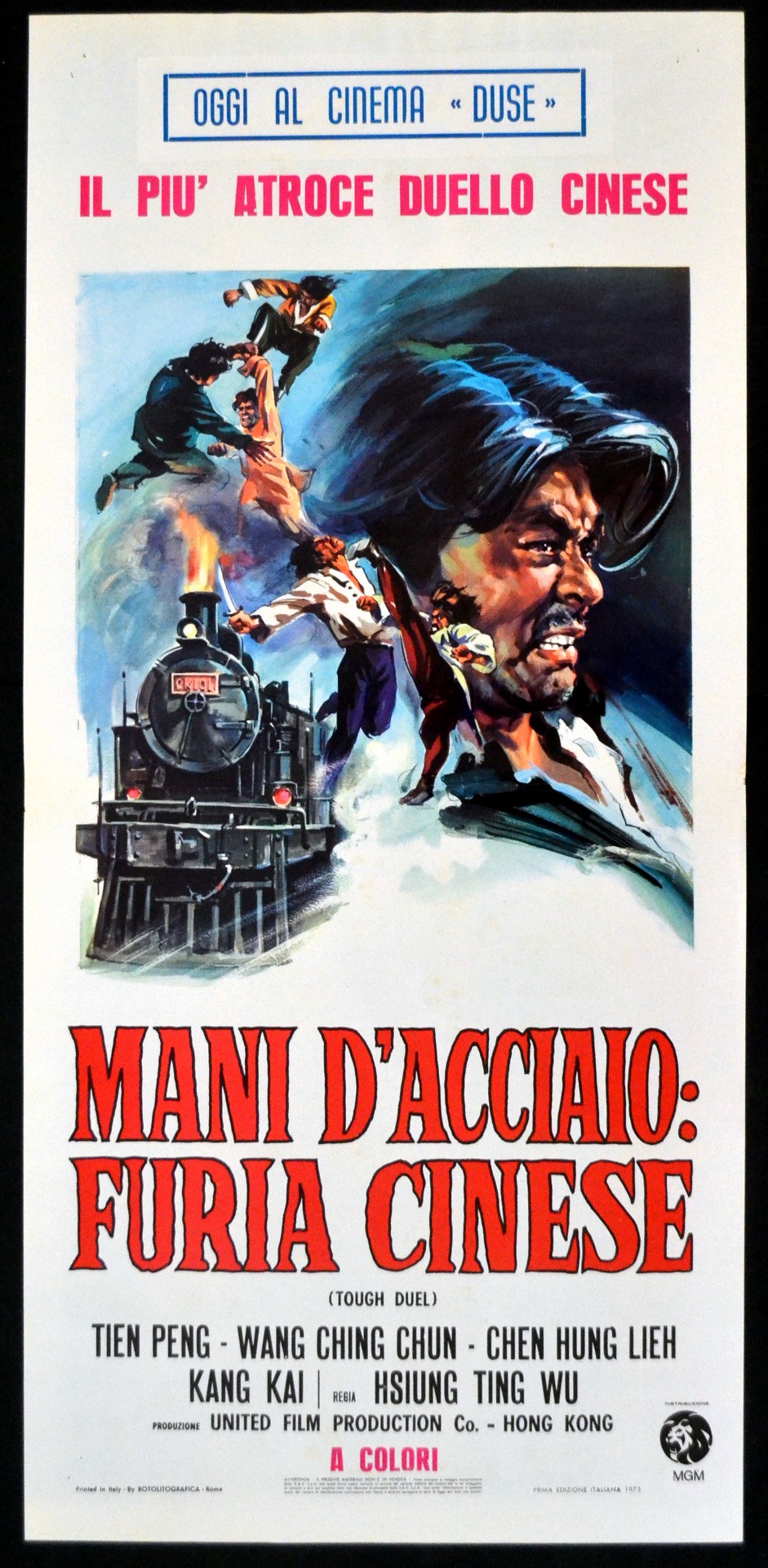 Original Italian 12 3/4 inch x 27 1/2 inch Locandina Poster for the 1972 Ting Wu Hsiung Taiwanese Martial Arts Movie TOUGH DUEL (YING PENG YING) starring Peng Tien, Jing Jun Wang, Hung Lieh Chen and Kai Kang.