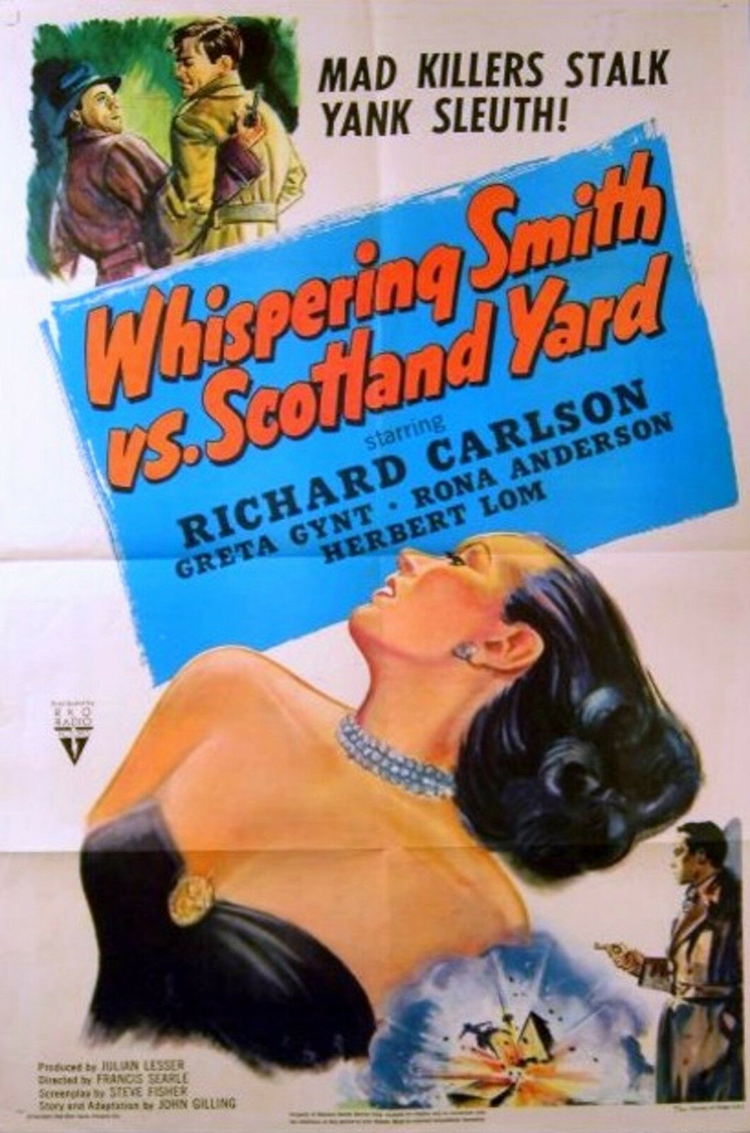 Original U.S. 27 inch x 41 inch 1-Sheet Poster for the 1951 Francis Searle Hammer Thriller WHISPERING SMITH HITS LONDON (WHISPERING SMITH VS. SCOTLAND YARD), written by John Gilling and starring Richard Carlson, Greta Gynt, Herbert Lom, Rona Anderson, Alan Wheatley, Dora Bryan and Reginald Beckwith.