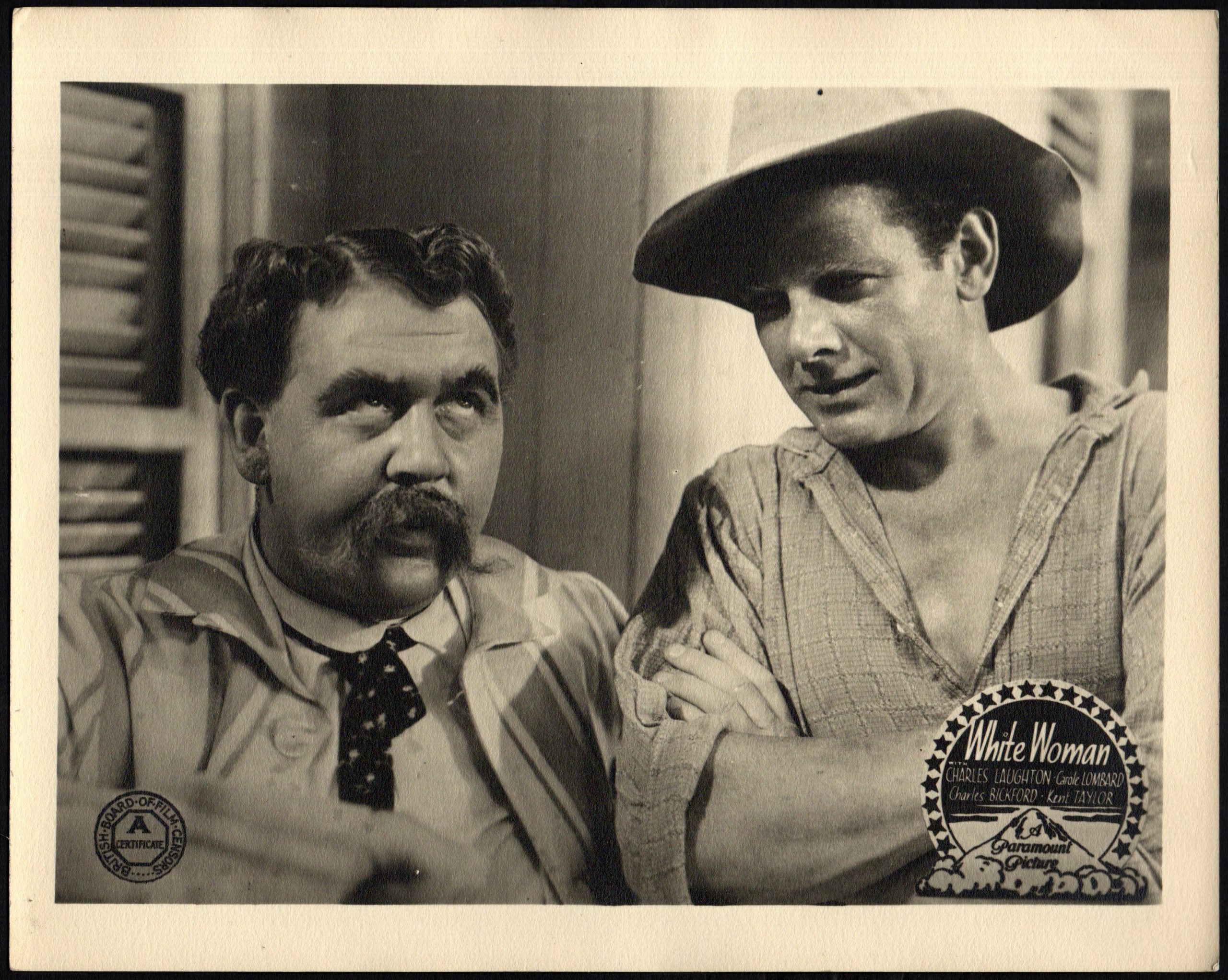 Original British 10 inch x 8 inch Front-of-House Still (Lobby Card) of CHARLES LAUGHTON & CHARLES BICKFORD in the 1933 Stuart Walker Drama WHITE WOMAN, based on the play by Norman Reilly Raine & Frank Butler.