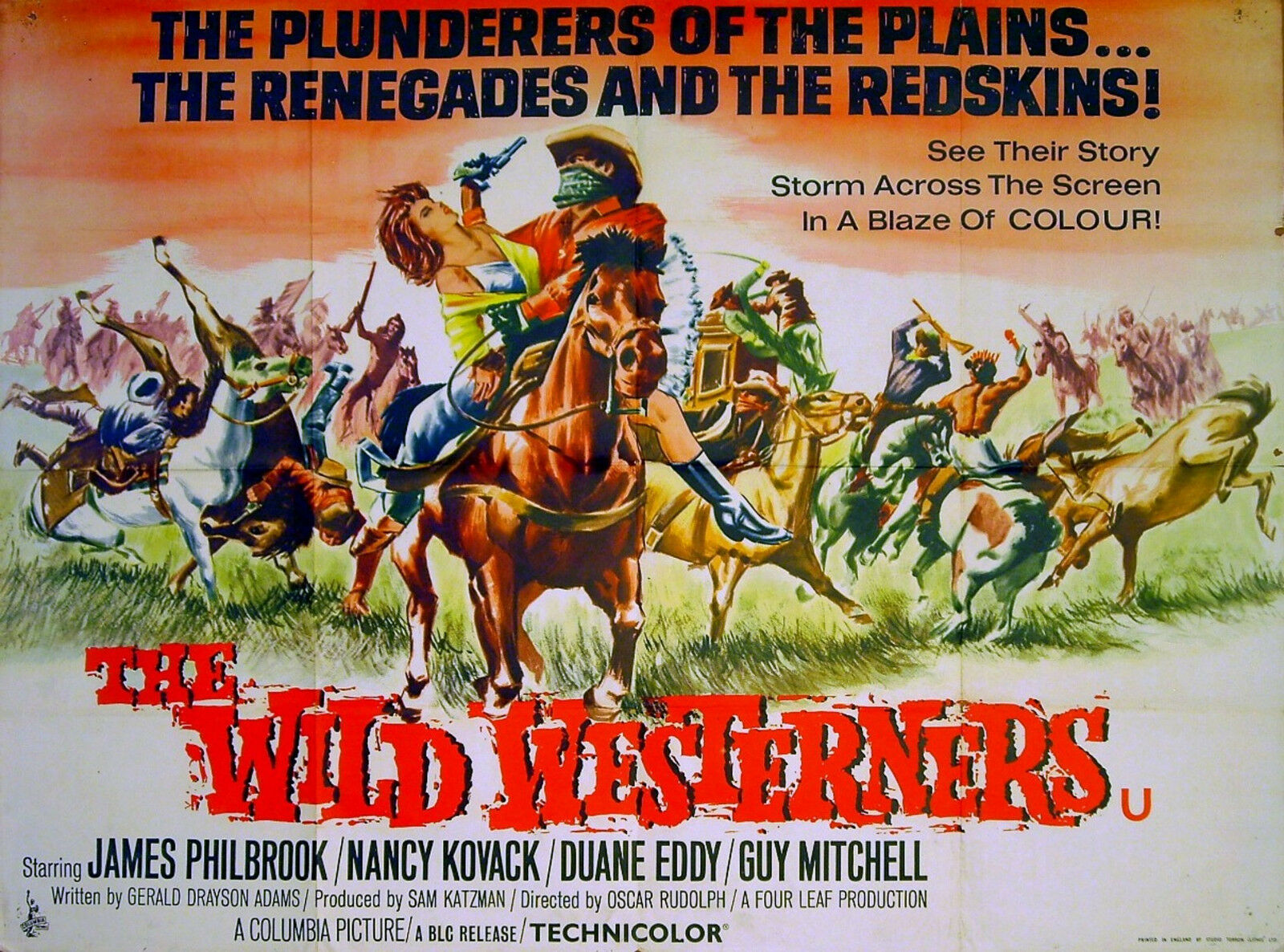 Original British 30 inch x 40 inch Quad Poster for the 1962 Oscar Rudolph Western THE WILD WESTERNERS, written by Gerald Drayson Adams and starring James Philbrook, Nancy Kovack, Duane Eddy, Guy Mitchell, Marshall Reed, Nestor Paiva, Harry Lauter and Bob Steele.