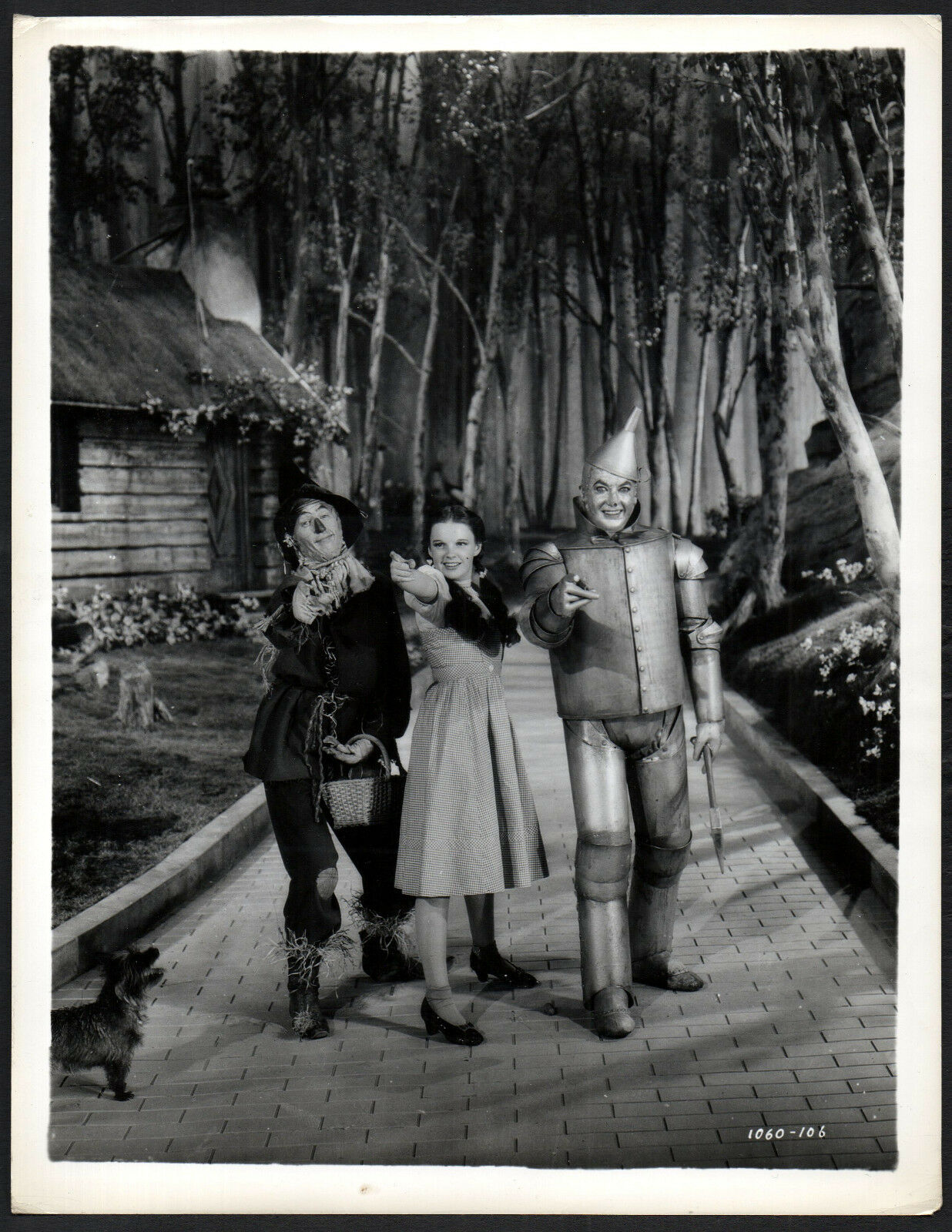 Vintage 10 1/8 inch x 8 inch Black and White Still of JUDY GARLAND, JACK HALEY & RAY BOLGER in the 1939 Victor Fleming Adventure THE WIZARD OF OZ, based on the book by L. Frank Baum.