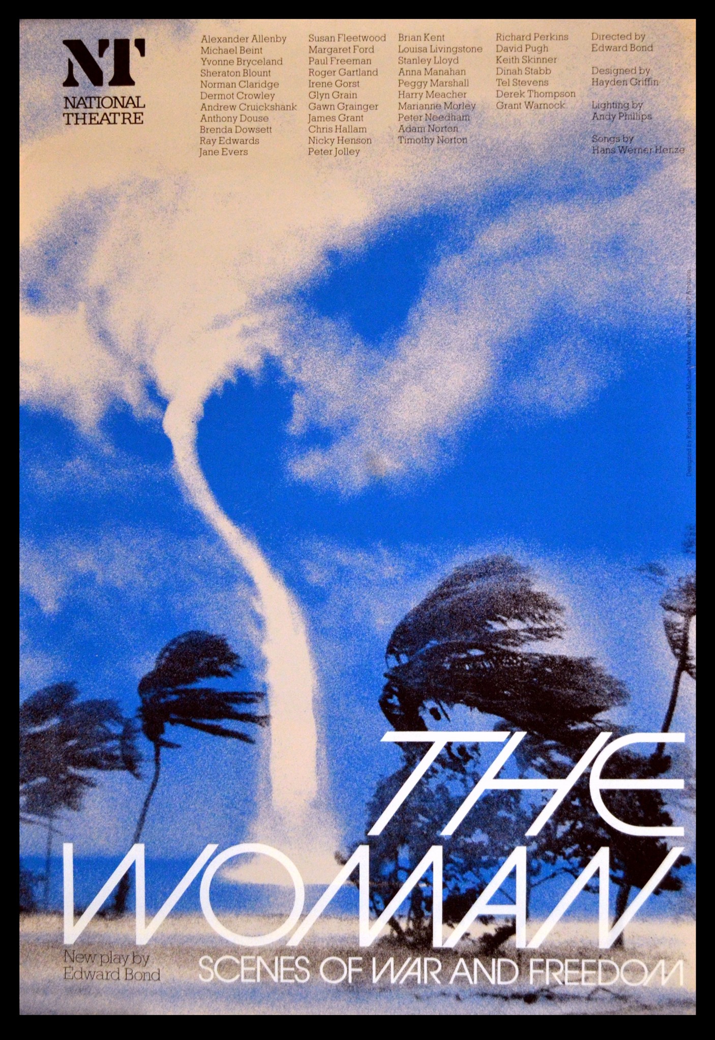 Original British 20 inch x 30 inch Double Crown Poster for the 1978 Edward Bond Play THE WOMAN: SCENES OF WAR AND FREEDOM starring Alexander Allenby, Michael Beint, Yvonne Bryceland, Sheraton Blount, Norman Claridge, Dermot Crowley, Andrew Cruickshank, Anthony Douse, Brenda Dowsett, Ray Edwards, Jane Evers, Susan Fleetwood, Margaret Ford, Paul Freeman, Roger Gartland, Irene Gorst, Glyn Grain, Gawn Grainger, James Grant, Chris Hallam, Nicky Henson, Peter Jolley, Brian Kent, Louisa Livingstone, Stanley Lloyd, Anna Manahan, Peggy Marshall, Harry Meacher, Marianne Morley, Peter Needham, Adam Norton, Timothy Norton, Richard Perkins, David Pugh, Keith Skinner, Dinah Stabb, Tel Stevens, Derek Thompson and Grant Warnock.