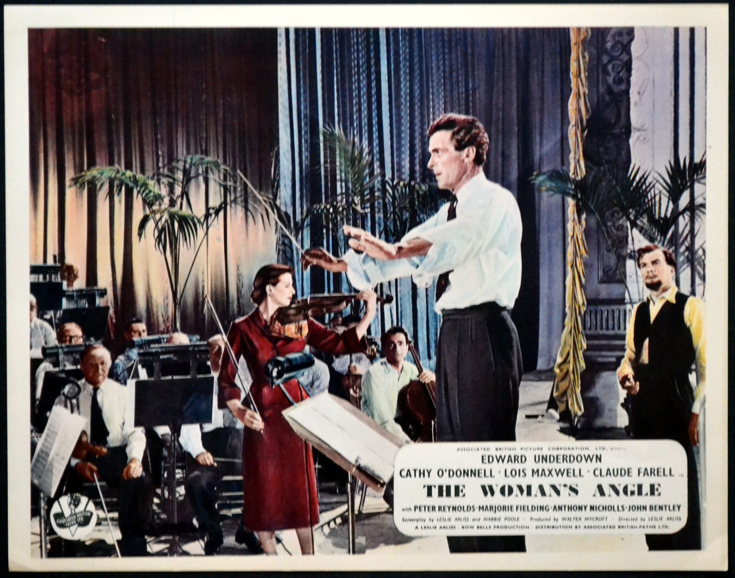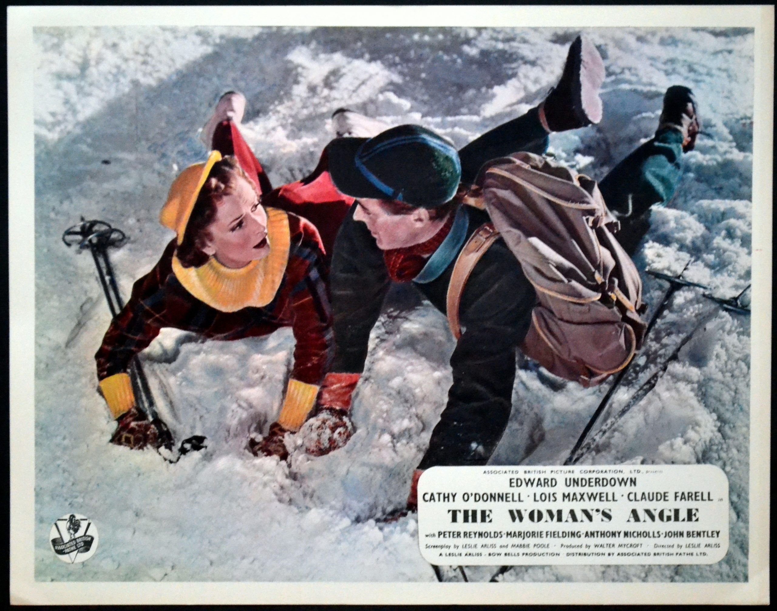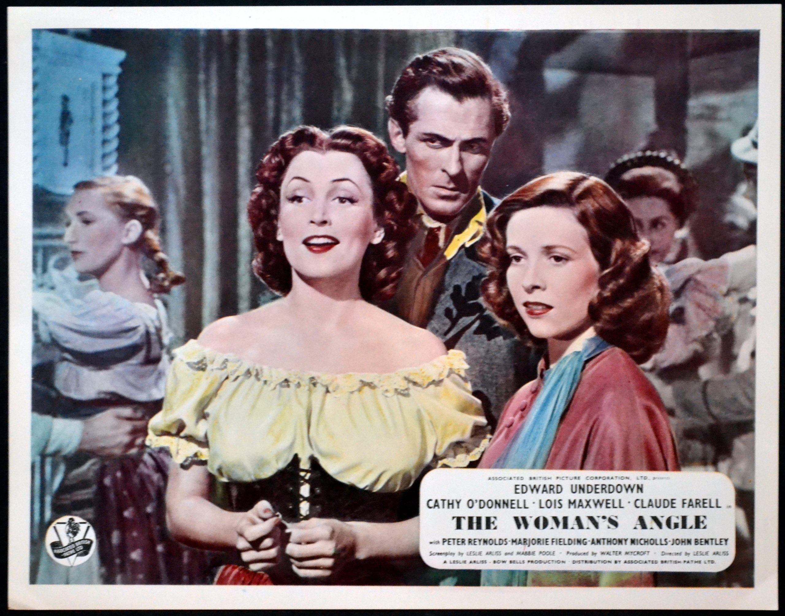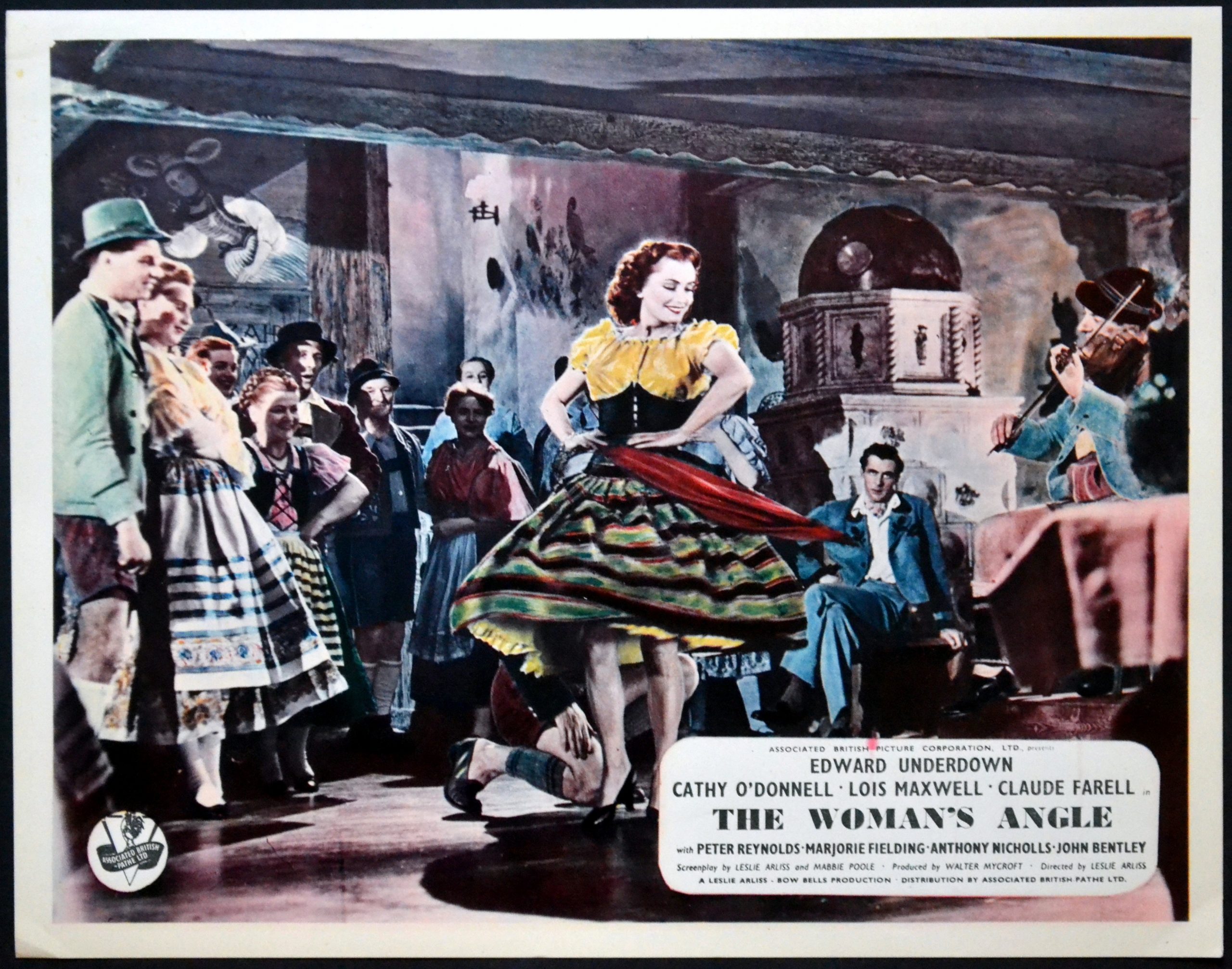 Original British Set of 8 11 inch x 14 inch Lobby Cards for the 1952 Leslie Arliss Drama THE WOMAN’S ANGLE, based on the novel by Ruth Feiner and starring Edward Underdown, Cathy O’Donnell, Lois Maxwell, Claude Farell, Peter Reynolds, Marjorie Fielding, Anthony Nicholls, John Bentley, Isabel Dean, Olaf Pooley, Ernest Thesiger, Eric Pohlmann, Joan Collins, Dana Wynter, Geoffrey Toone, Anton Diffring, Miles Malleson and Peter Illing.