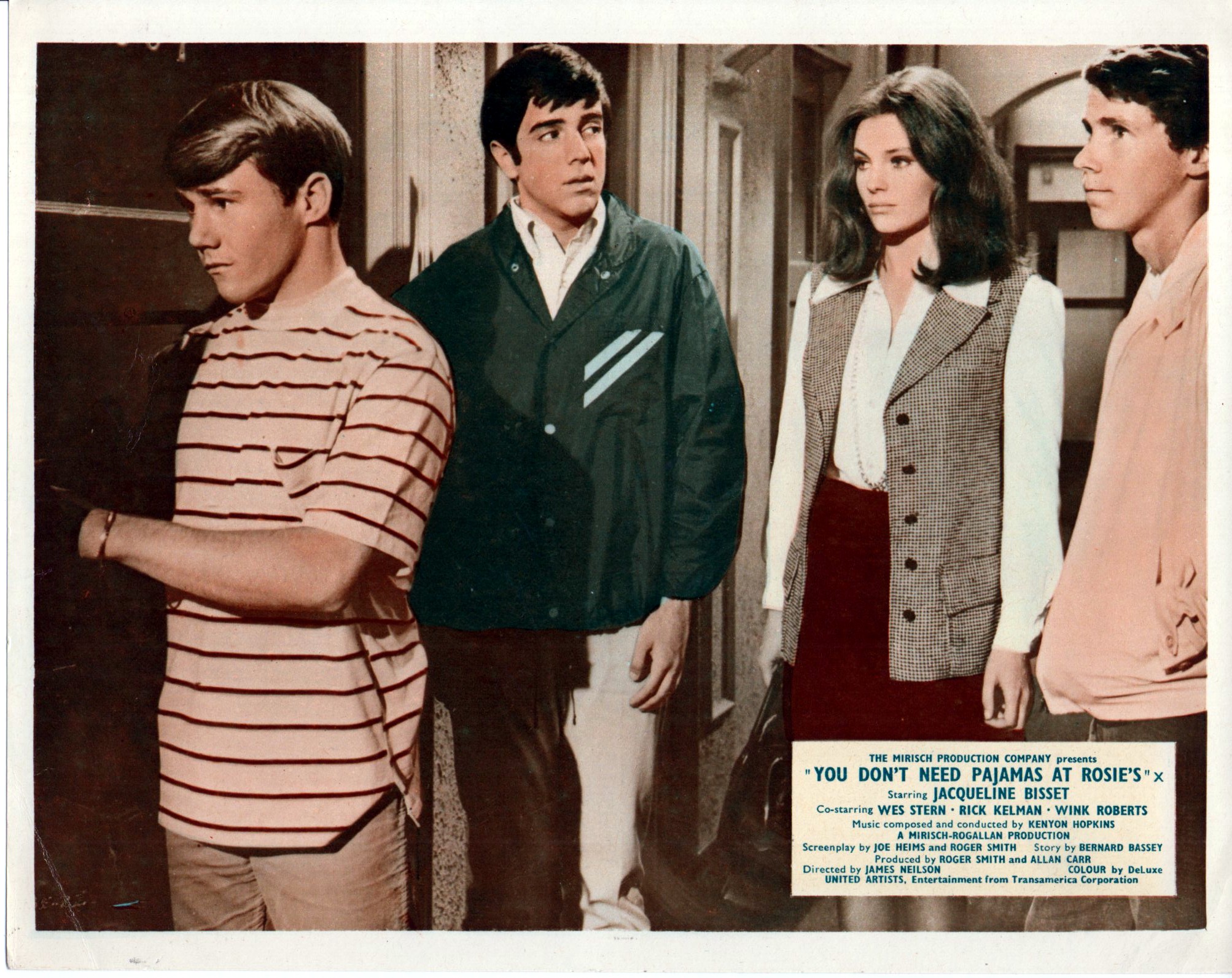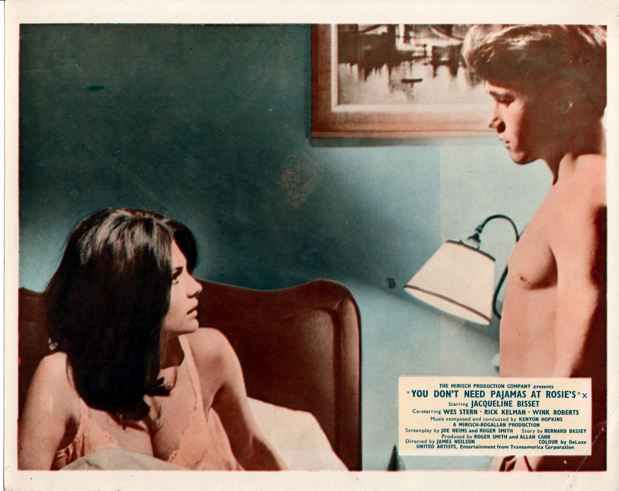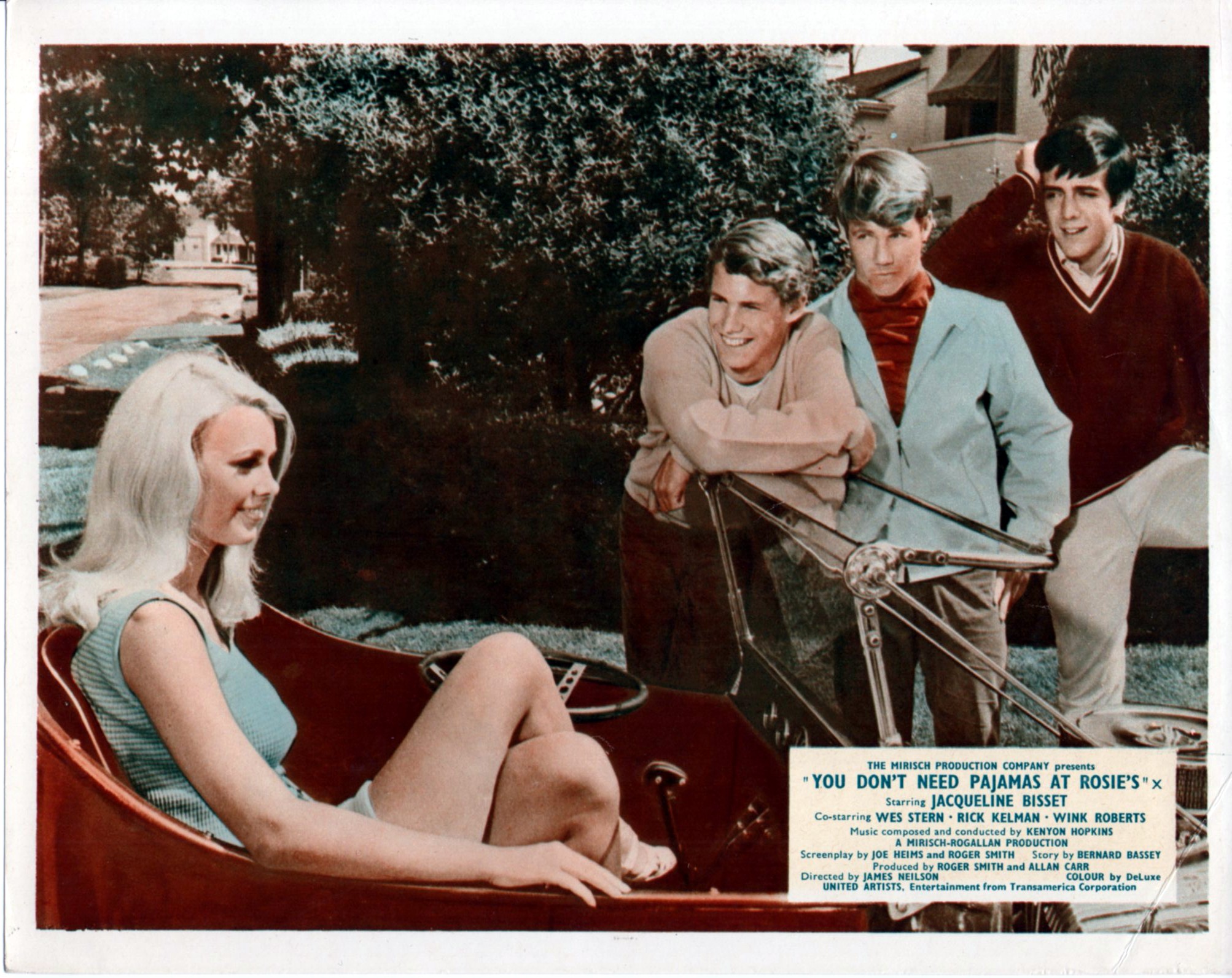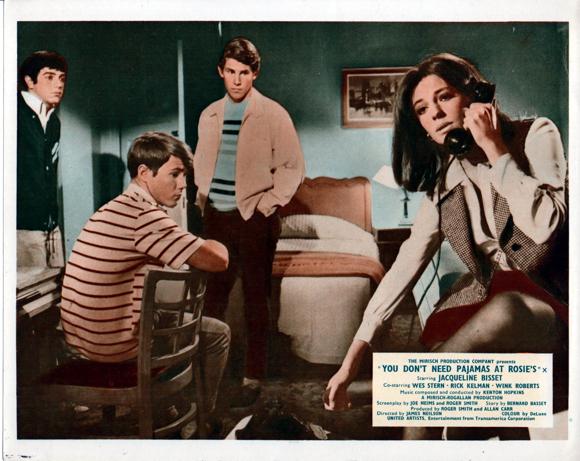 7 Original British 10 inch by 8 inch Front-of-House Stills (Lobby Cards) for the 1969 James Neilson Comedy YOU DON’T NEED PAJAMAS AT ROSIE’S starring Jacqueline Bisset, Wes Stern, Ricky Kelman, Wink Roberts, Gerard Parkes, Cosette Lee, Sharon Acker and Gail Carrington.