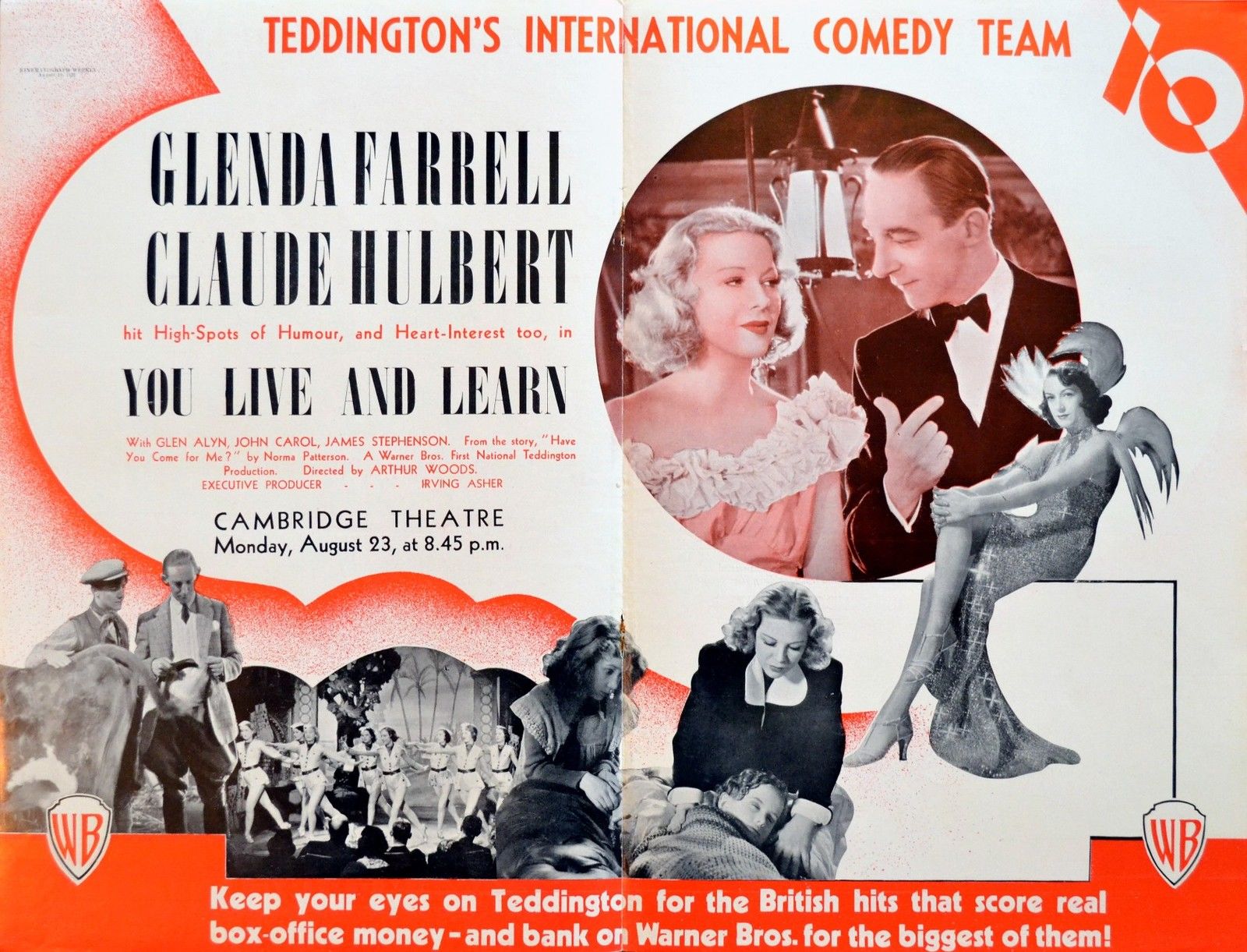 Original British 17 inch x 22 inch Trade Advertisement removed from a British Film Trade Journal for the 1937 Arthur Woods Comedy YOU LIVE AND LEARN, based on the story “Have You Come for Me?” by Norma Patterson and starring Glenda Farrell, Claude Hulbert, Glen Alyn, John Carol, James Stephenson and Gibb McLaughlin.